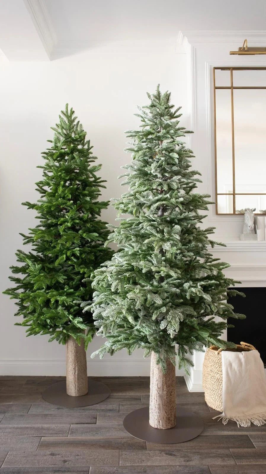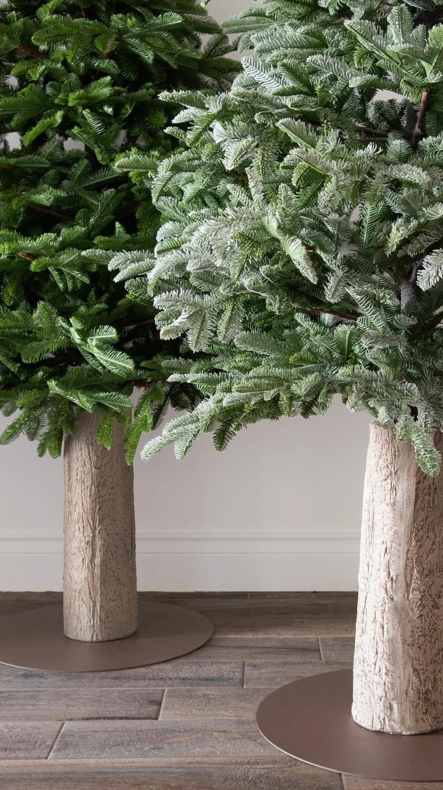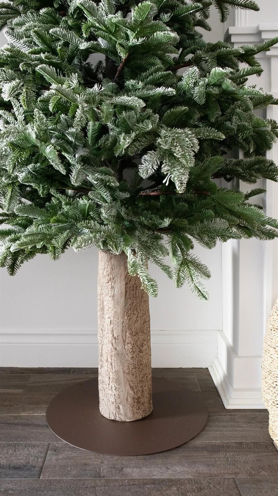 La base a tronco in legno naturale valorizza l’effetto autentico e rende l’albero una decorazione scenografica di grande impatto, perfetta sia per salotti moderni che per ambientazioni più classiche.