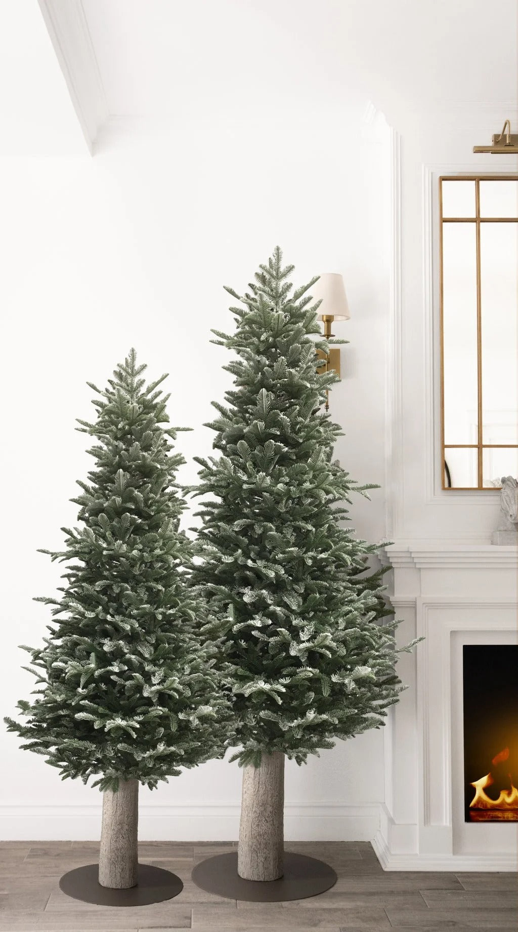 Realizzato in PE effetto Real Touch e arricchito con finitura innevata (flock), questo albero unisce realismo visivo e al tatto a un design compatto, ideale per ambienti che richiedono verticalità e raffinatezza.