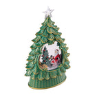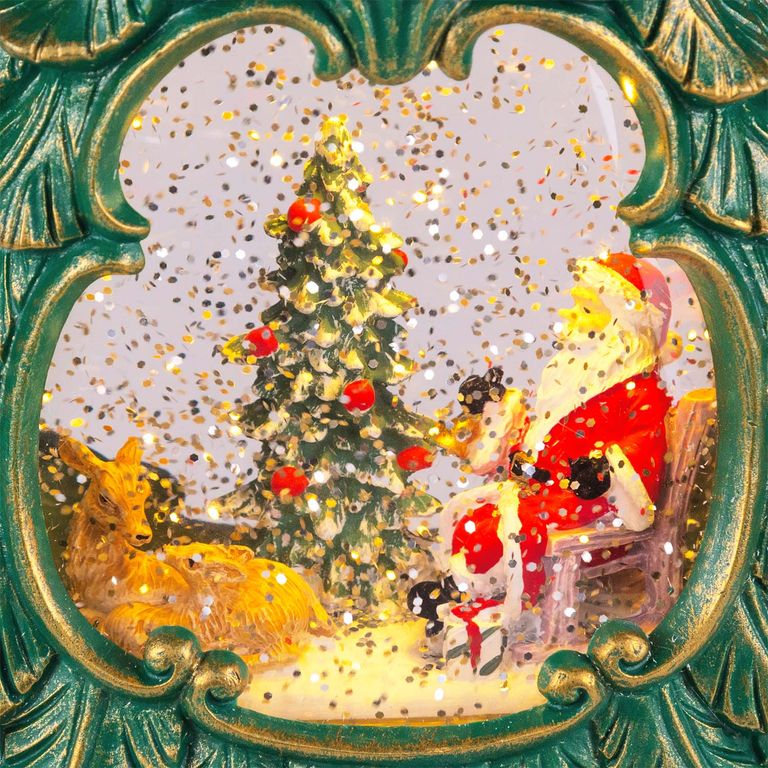 La vera magia si accende quando attivi l'albero: l'interno riempito d'acqua si anima grazie al movimento automatico che fa danzare delicatamente il glitter come una vera nevicata che avvolge la scena natalizia.