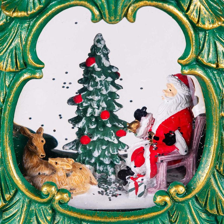 La decorazione natalizia ideale per chi ama le tradizioni e vuole portare nella propria casa un pezzo autentico della magia natalizia, dove il fascino del verde antico incontra la dolcezza delle melodie festive in un gioco di luci e movimento che racconta la storia più bella del Natale.
