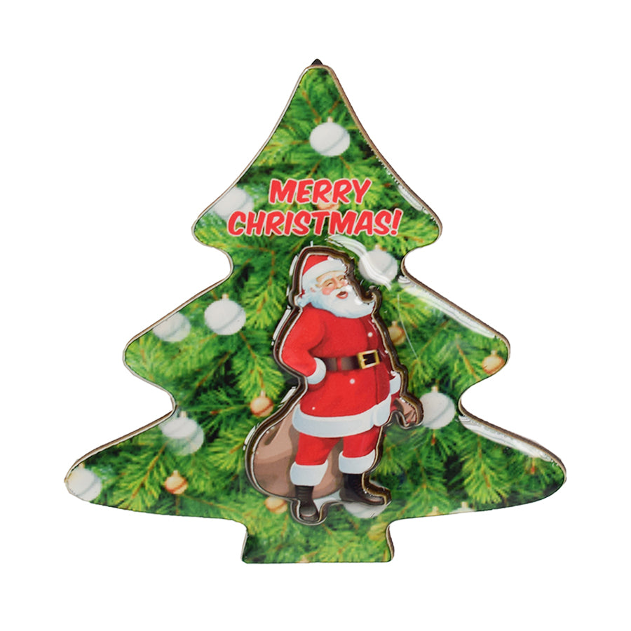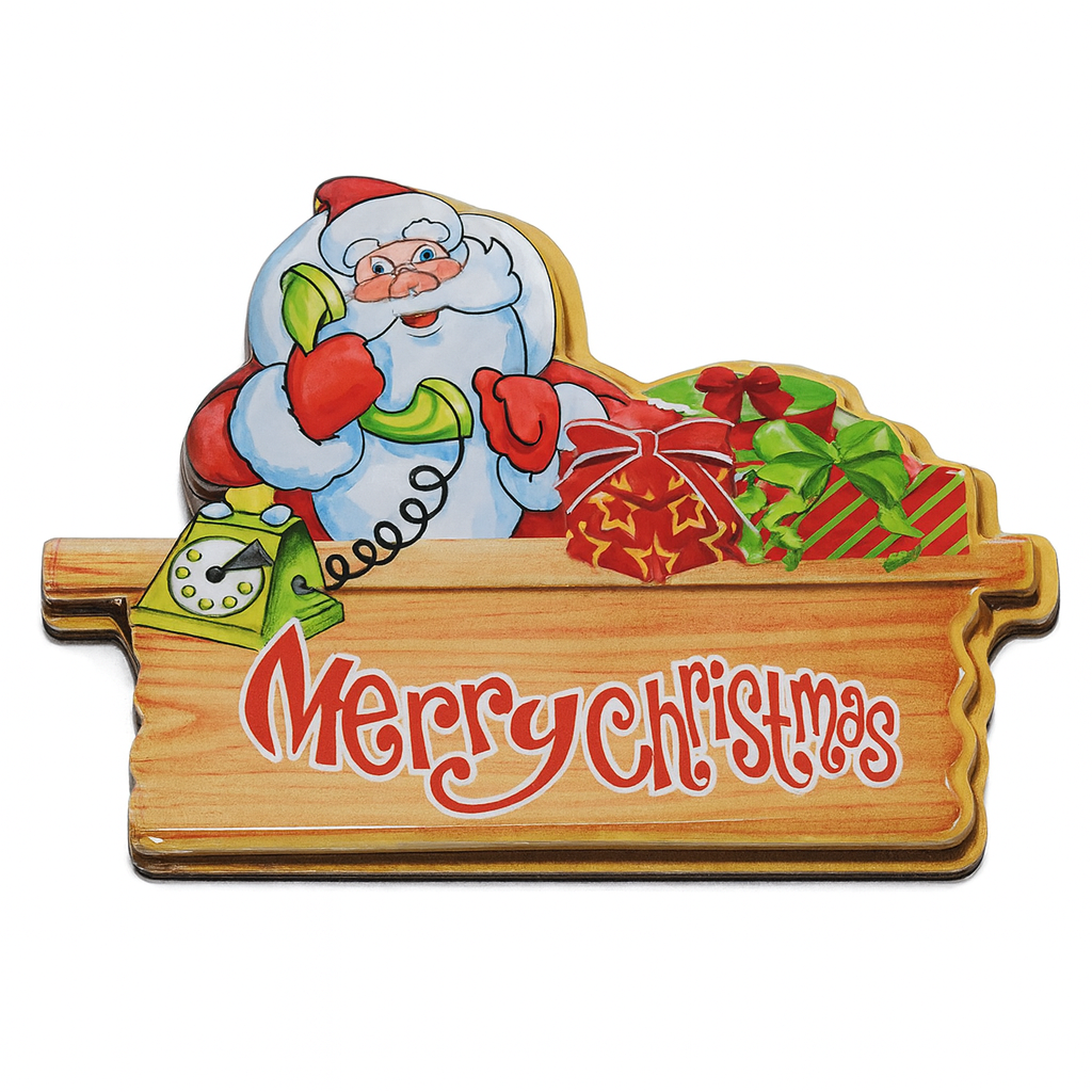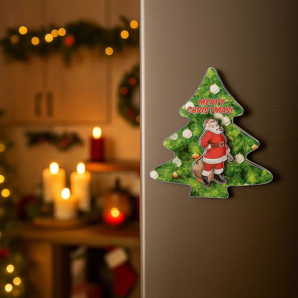 All'interno potrai ammirare Babbo Natale comodamente seduto sulla sua sedia, accompagnato da una dolce renna sdraiata al suo fianco e da un albero di Natale che domina al centro della scena, creando un tableau perfetto di pace e serenità natalizia.