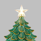 Scopri la magia nascosta di questo straordinario albero di Natale alto 26 centimetri, realizzato in plastica verde antico con raffinate striature oro che richiamano i colori tradizionali delle festività.