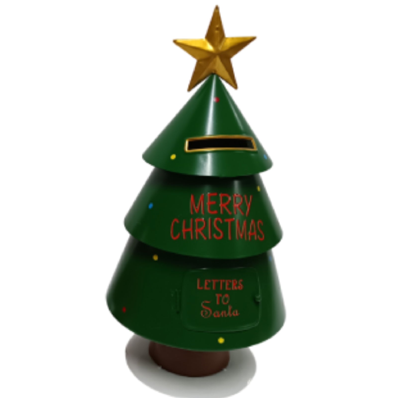 Questo albero in latta portalettere di Natale, alto 36 cm, è una decorazione natalizia dal fascino unico, pensata per aggiungere un tocco speciale e funzionale agli ambienti durante le festività.