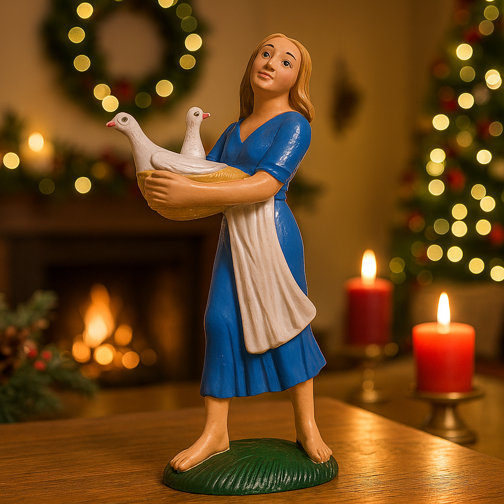Rappresenta l’allevatrice, figura tipica dei pastorelli e mestieri del presepe tradizionale.
