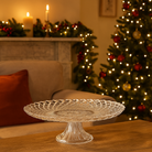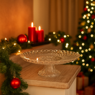 Alzata trasparente su piede in vetro con bordo "Rombi" per torte e dolci