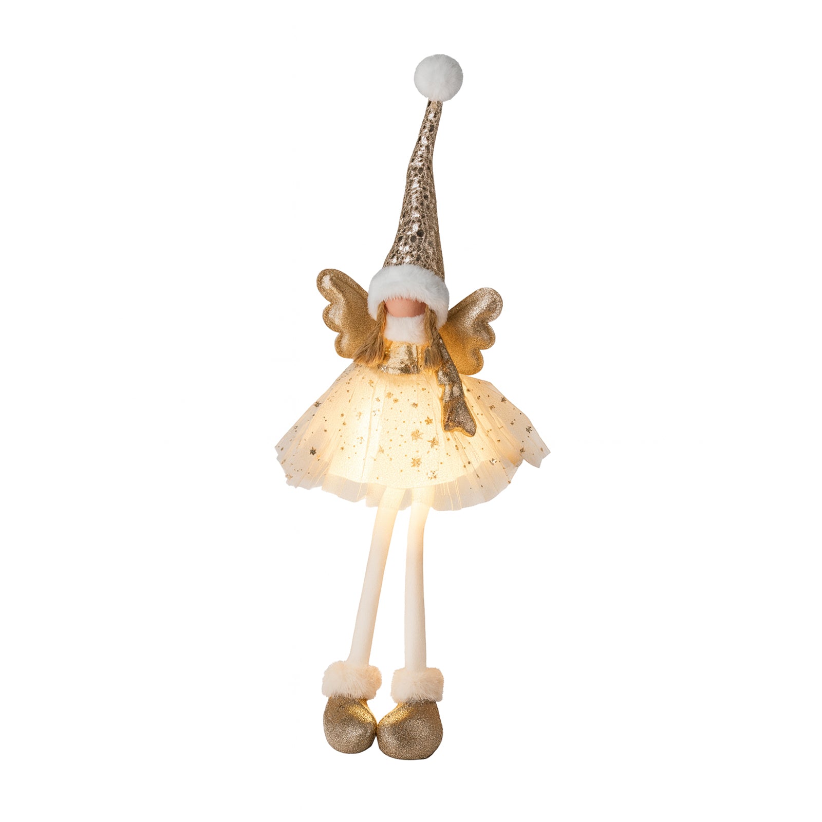 Angelo con luci Led e con gonna luminosa per decorazioni natalizie h 50 cm