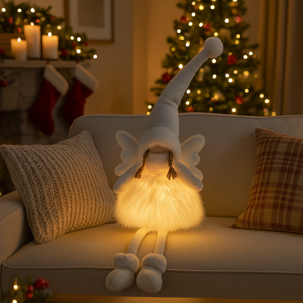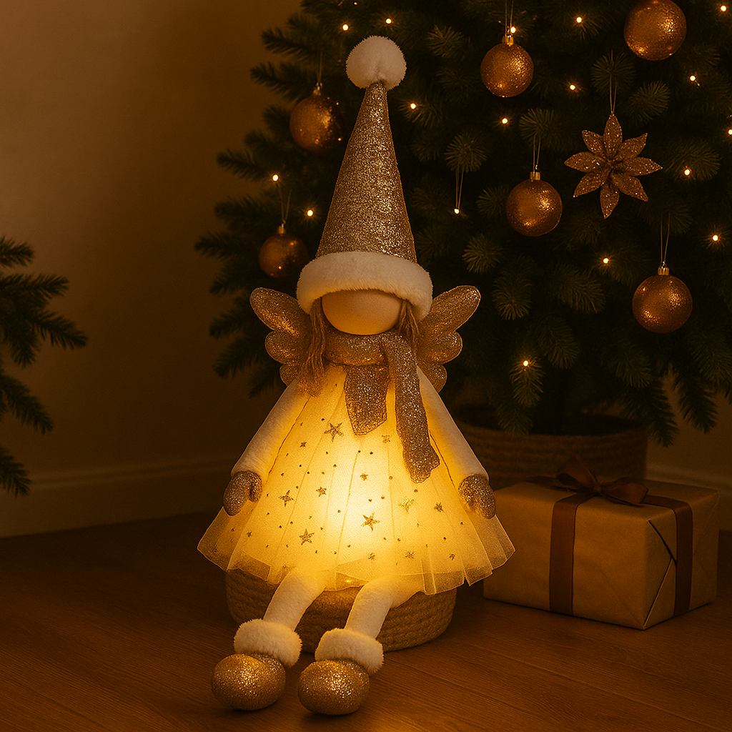 Con le sue luci LED soffuse e la gonna luminosa, questo angelo diventa il protagonista delle feste, regalando un’atmosfera calda e accogliente. Ideale per chi cerca un dettaglio raffinato, adatto a salotti, ingressi o vetrine natalizie.