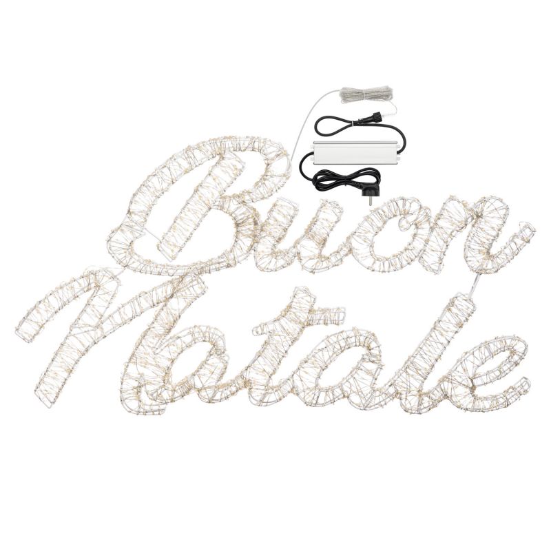 Il prodotto in questione è una scritta di auguri realizzata con MicroLed bianco caldo e bianco, dal diametro di Ø 1,5 millimetri ciascuno.