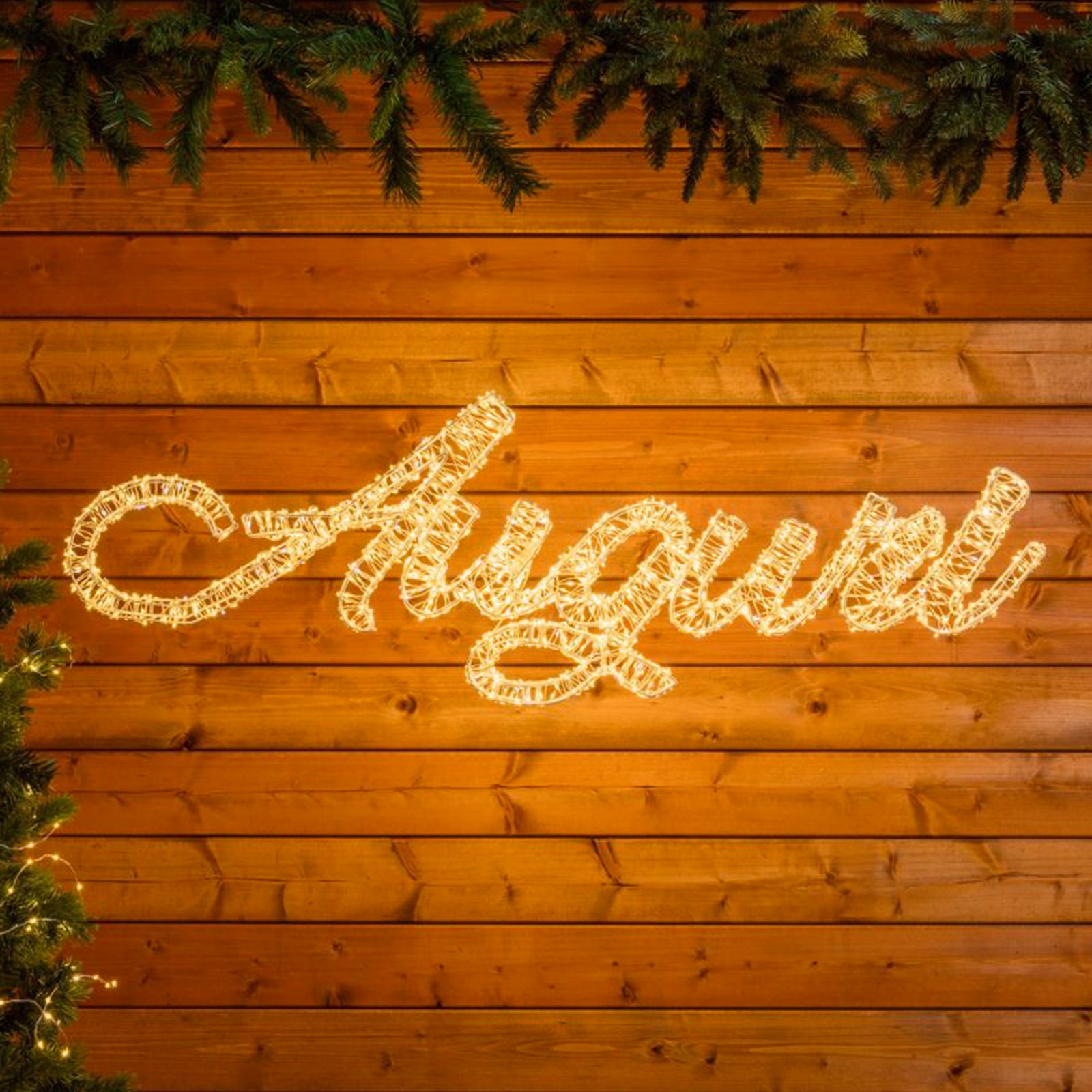 Grazie alla sua forma 3D, la scritta risalta in modo sorprendente sugli alberi di Natale, pareti o qualsiasi altro punto in cui viene posizionata.