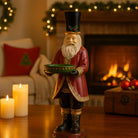 Babbo Natale con cilindro e regalo verde decorazione in poliresina da 50 cm