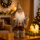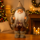 Babbo Natale con lampada, ramo, sacca dei regali, decorazione da 45 cm grigio