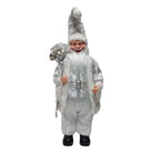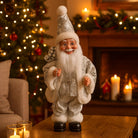 Il Babbo Natale con pailettes color argento, dotato di carillon e movimento della testa, è una decorazione natalizia che unisce eleganza, tradizione e un tocco di modernità.