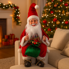 Questo Babbo Natale seduto è una decorazione natalizia che unisce tradizione e un tocco di elegante artigianalità, pensata per arricchire gli ambienti della casa durante il periodo delle feste con un elemento che trasmette immediatamente calore e spirito natalizio.