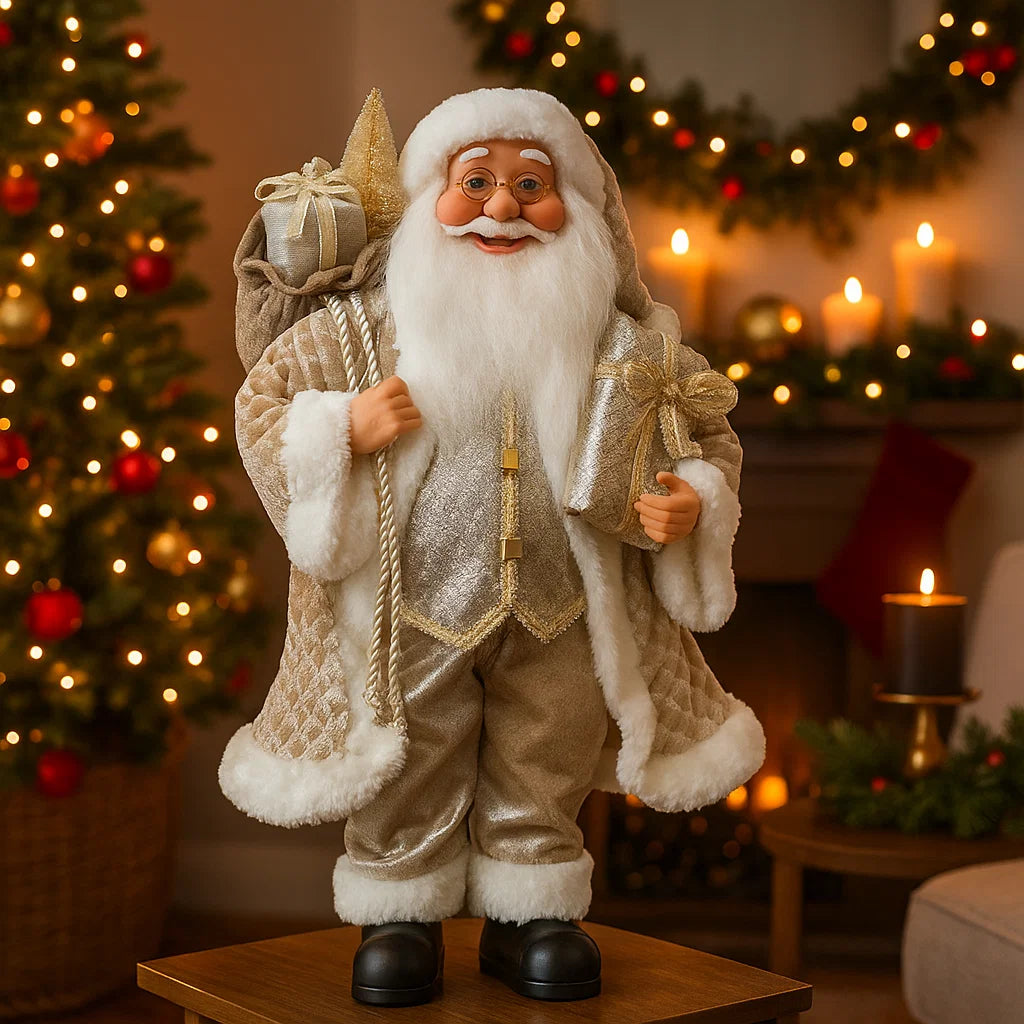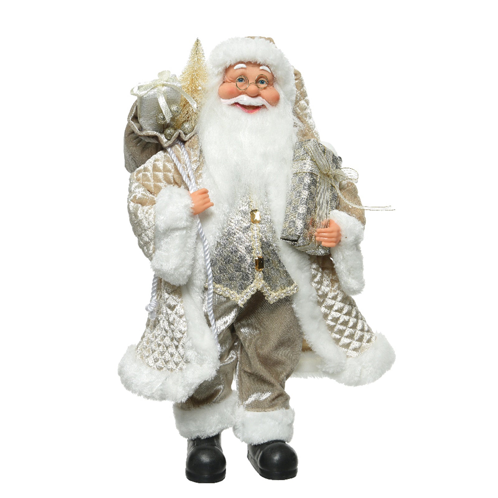 Babbo Natale con regali e barba folta statuetta color Argento in poliestere