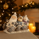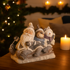Babbo Natale con renna e pupazzo di neve con slitta in polvere di gesso color grigio decorazione natalizia
