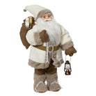 Questa elegante statuetta di Babbo Natale è perfetta per chi ama decorazioni natalizie dai toni naturali e raffinati. Il Babbo Natale è realizzato con un abito nei colori bianco e marrone, arricchito da dettagli in pelliccia sintetica che richiamano la tradizione nordica e creano un effetto caldo e accogliente.