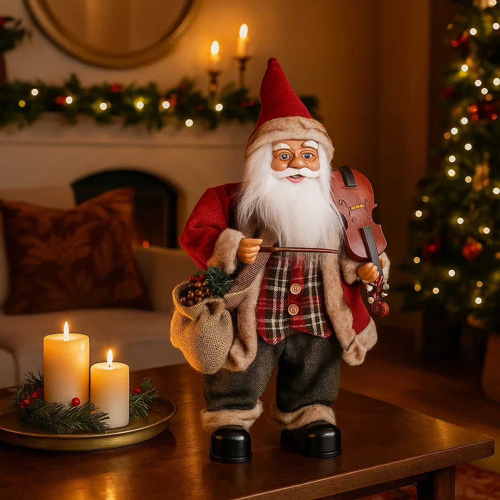 Babbo Natale con violino, movimento con musica, barba folta e bianca da 60 cm
