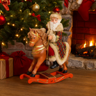 Babbo Natale decorativo con abito scozzese e cavallino decorazione natalizia h 42 cm