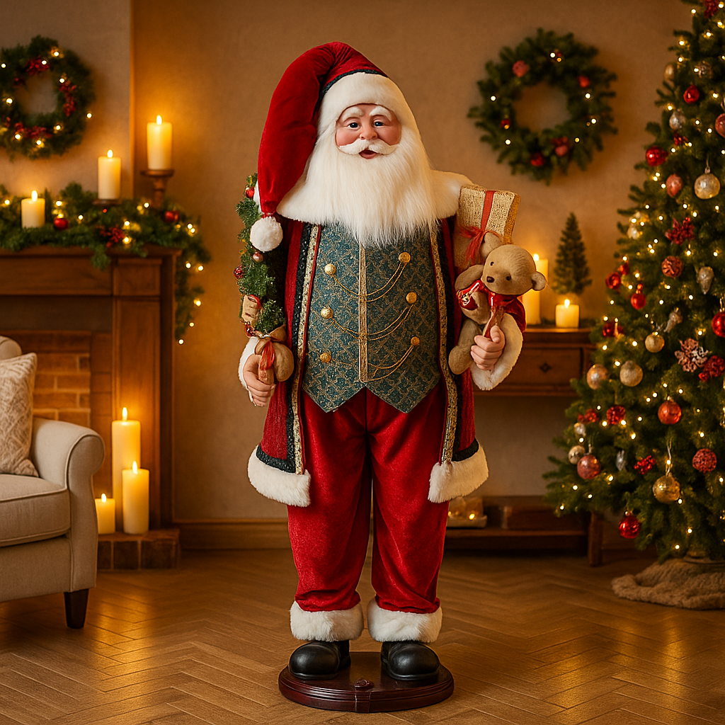Questa figura di Babbo Natale non solo rappresenta l'iconico personaggio natalizio, ma lo fa in una forma dinamica e coinvolgente, grazie alla funzione danzante che lo caratterizza.