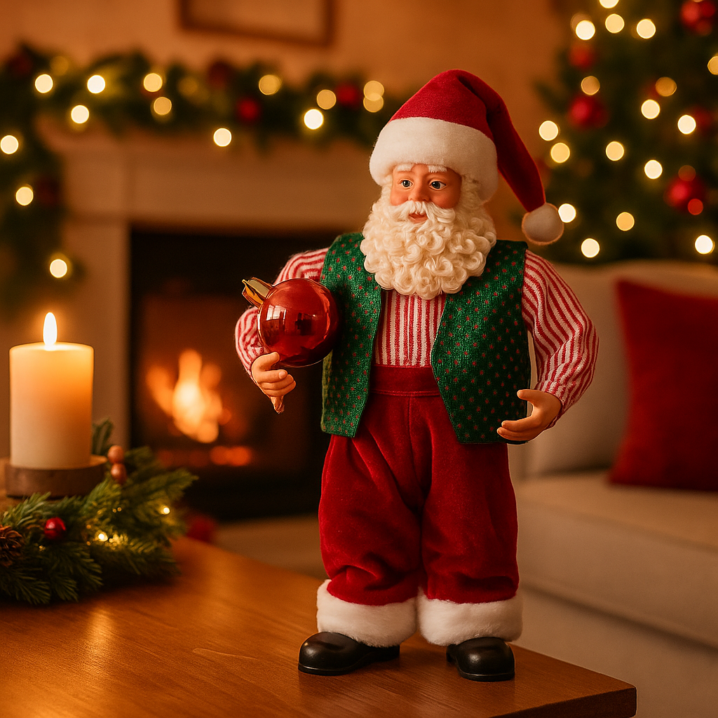 Questo Babbo Natale decorativo, alto 23 cm, è realizzato in tessuto morbido con dettagli curati: dal cappello con bordo in pelliccia al sacco dei regali, ogni elemento richiama la magia del Natale.