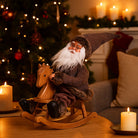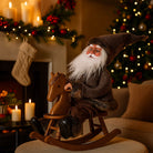 Babbo Natale pupazzo con Cavallo a dondolo in movimento e musica vestito Marrone h 28 cm