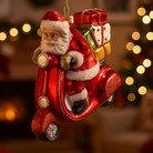 Babbo Natale sullo scooter pendaglio per decorazioni natalizie altezza 10 cm