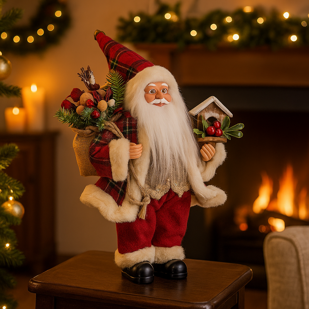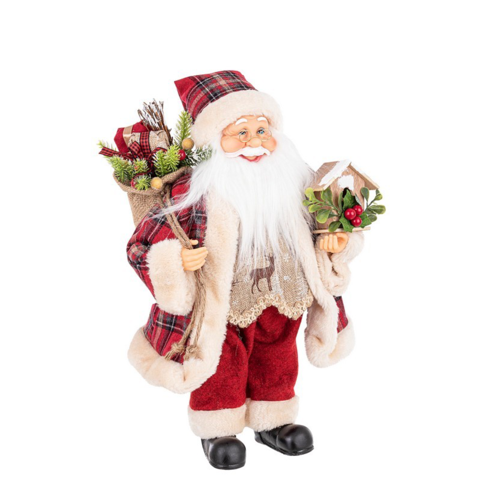 Babbo natale"Alwin" scozzese rosso in poliestere per decorazioni natalizie