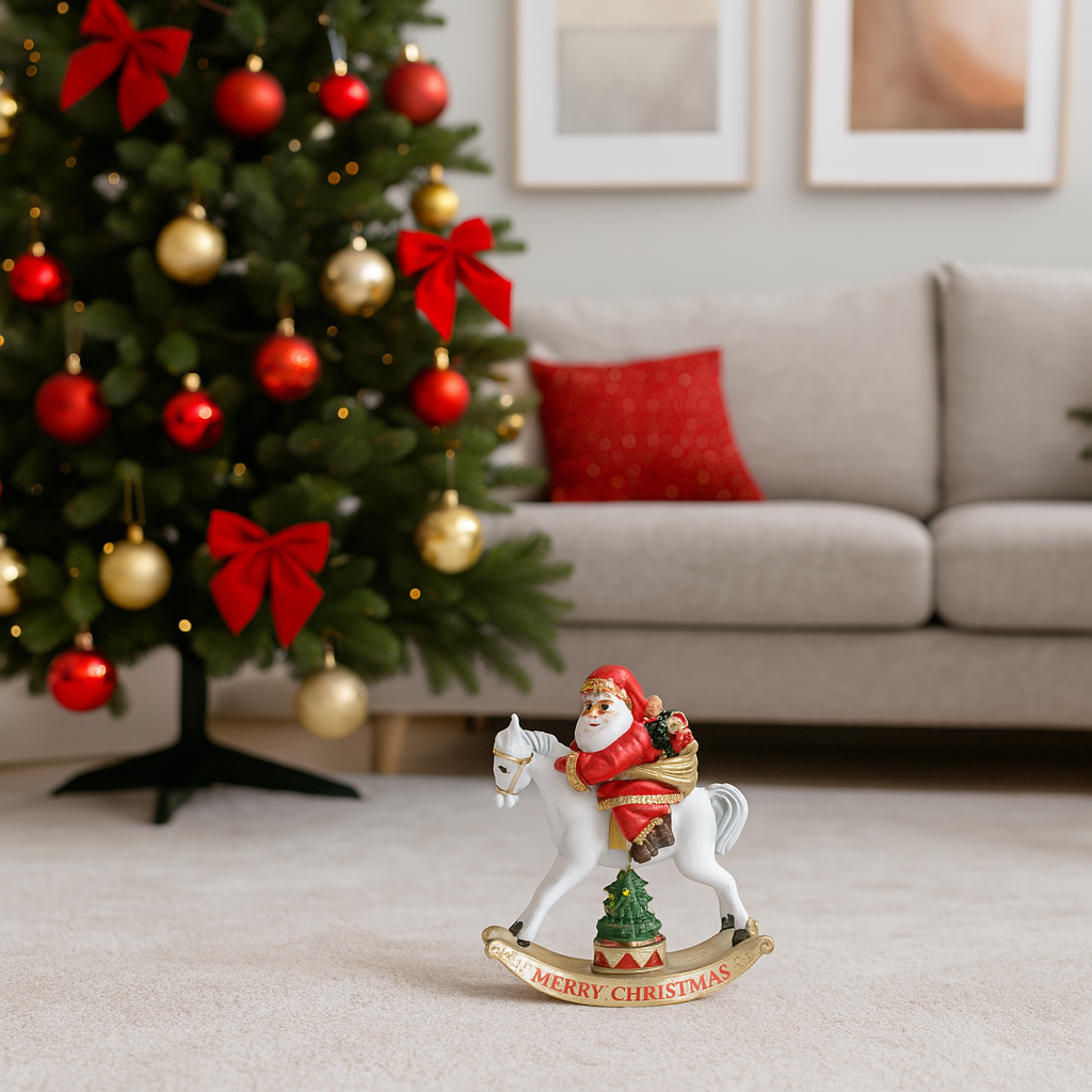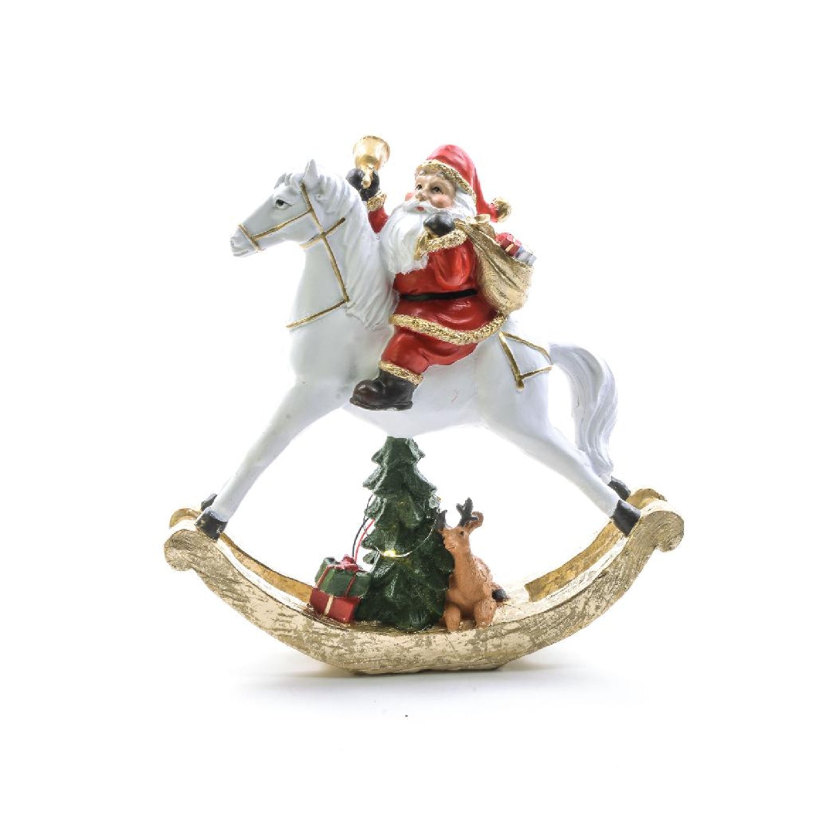 Babbo su cavallo a dondolo in poliresina con luci a batteria in scatola regalo
