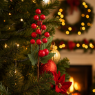 Le bacche rosse, alte 22,5 centimetri, si presentano come eleganti grappoli pronti a impreziosire l’albero di Natale con un tocco di colore intenso e naturalezza raffinata.