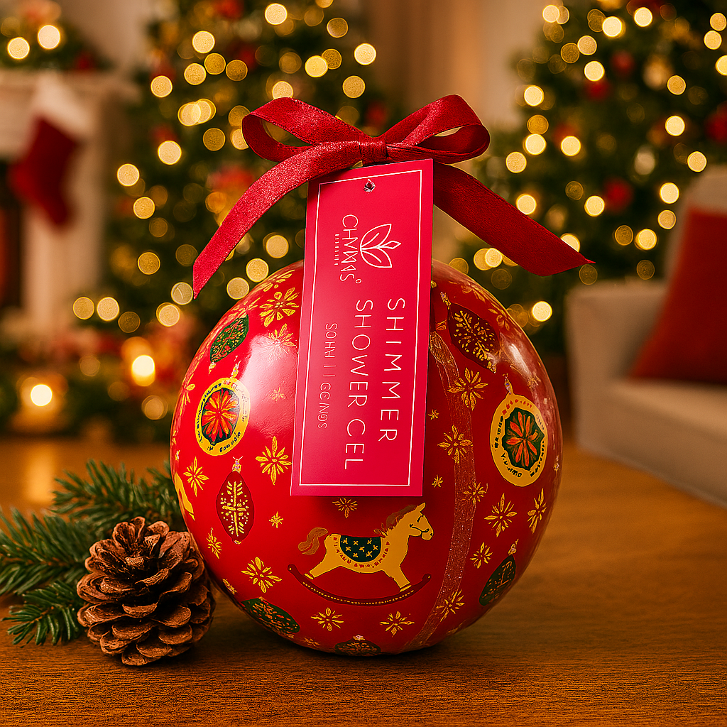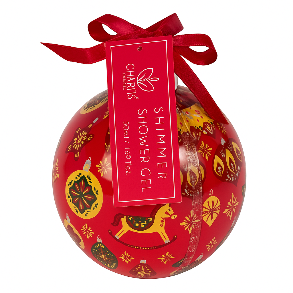 Il flacone sferico, realizzato in materiale trasparente o semi-lucido, lascia intravedere la tonalità brillante del bagnoschiuma al suo interno, che ricorda le classiche sfumature natalizie come il rosso rubino, il dorato o l’argento, a seconda delle varianti disponibili.