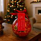 Il tappo, integrato nel design della sfera, permette di richiuderla facilmente garantendo la conservazione del prodotto, mentre un eventuale nastro o cordino applicato rende la confezione simile a una vera pallina da appendere, aggiungendo un tocco di sorpresa e raffinatezza.