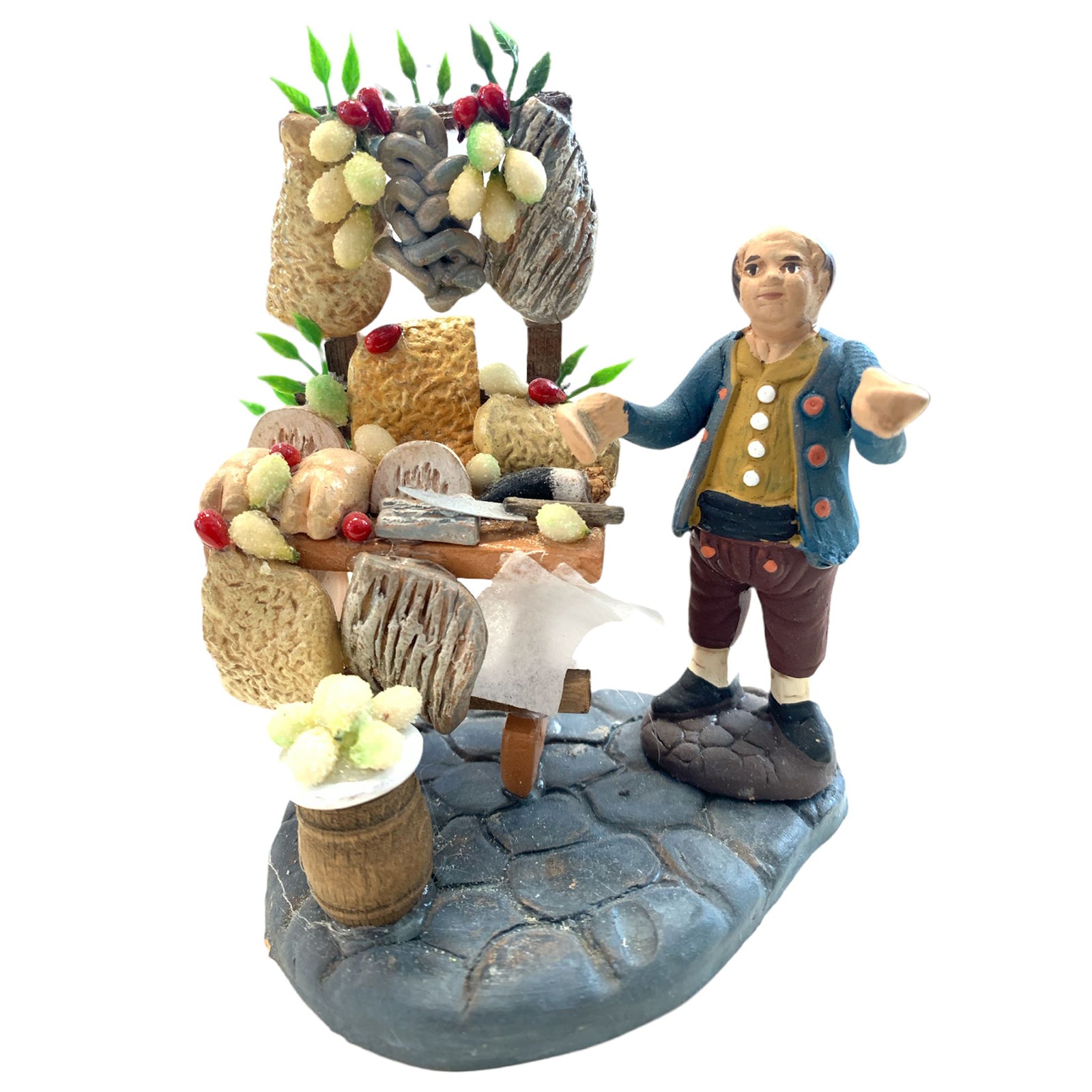 Banco con cibo statuetta in terracotta artigianale per presepe napoletano da h 7 cm