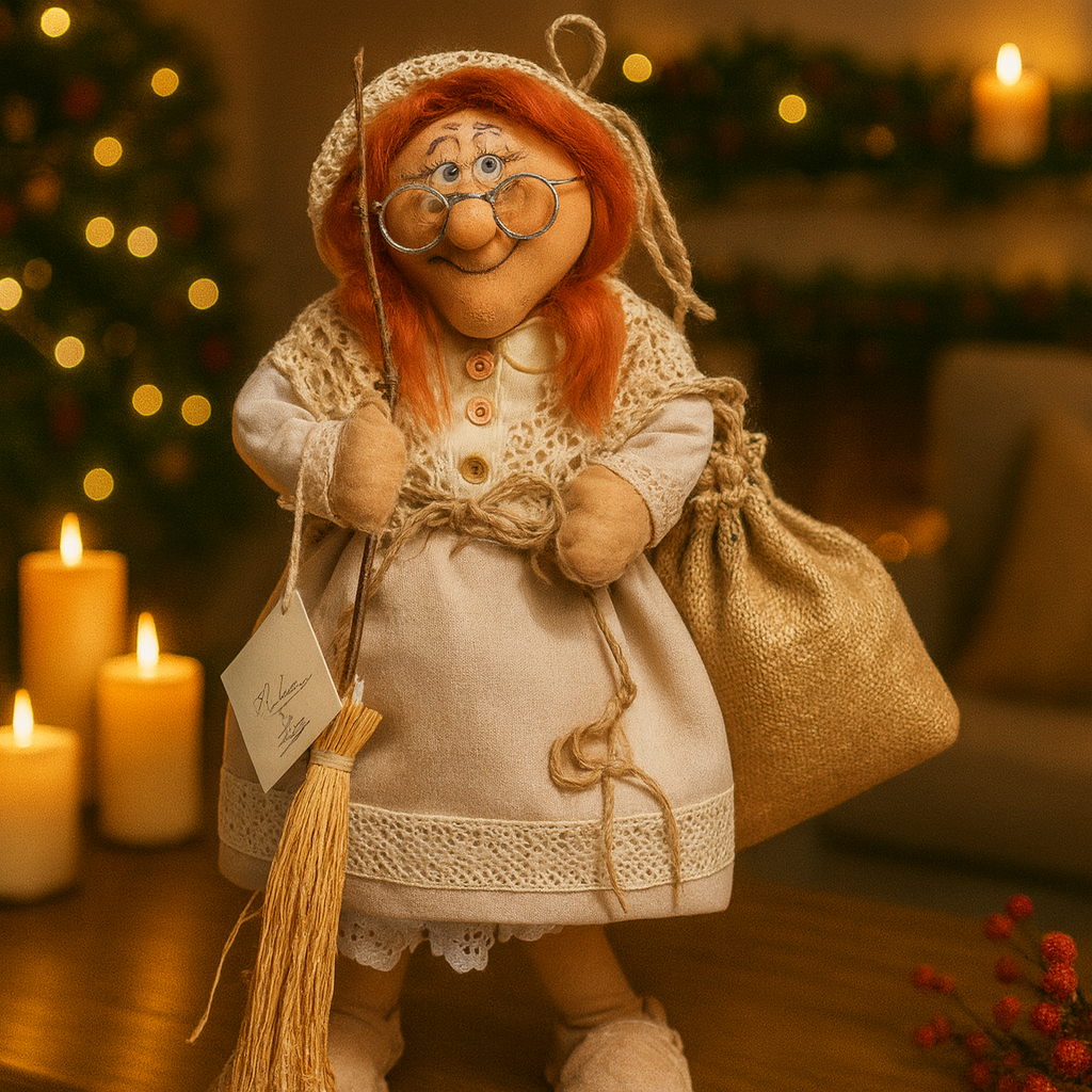 Perfetta come decorazione d’interno o come regalo artigianale di pregio, la Befana “Graziella” è un simbolo di eleganza, tradizione e qualità senza tempo.