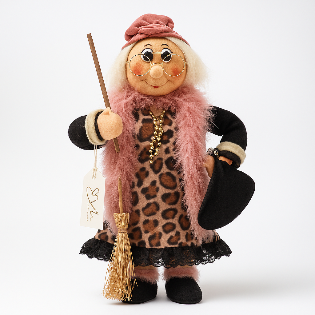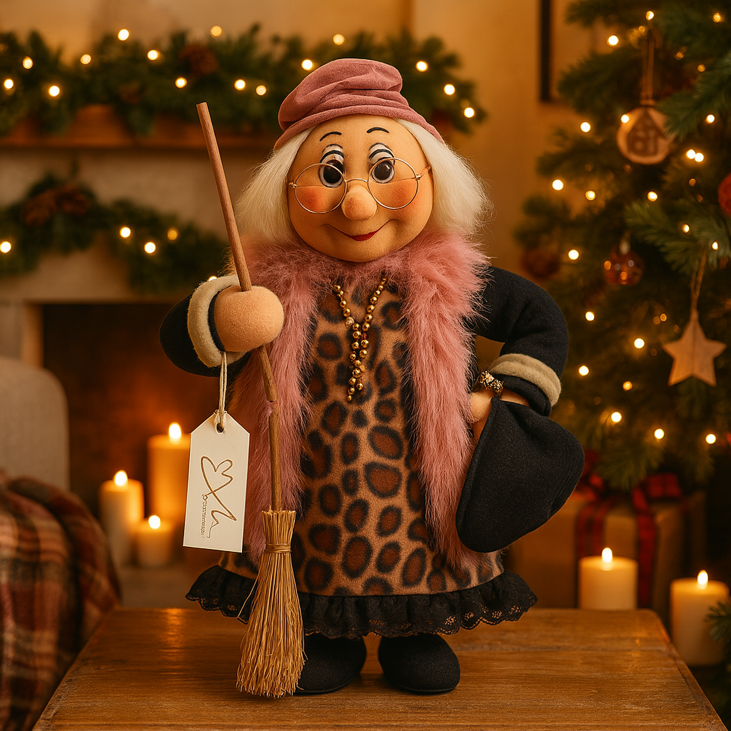 La Befana “Leonarda” è una creazione esclusiva che celebra la tradizione con un tocco di eleganza senza tempo.
