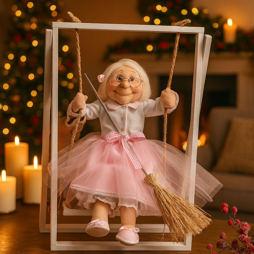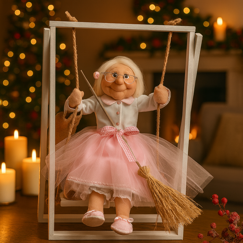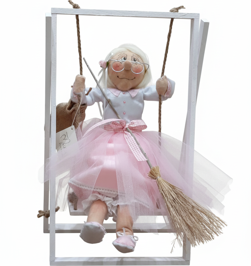 La Befana “Nina” con altalena è una raffinata creazione artigianale pensata per chi ama unire tradizione e originalità nella decorazione della casa.