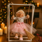 Befana "Nina" con altalena da collezione in tessuto artigianale decorazione per epifania