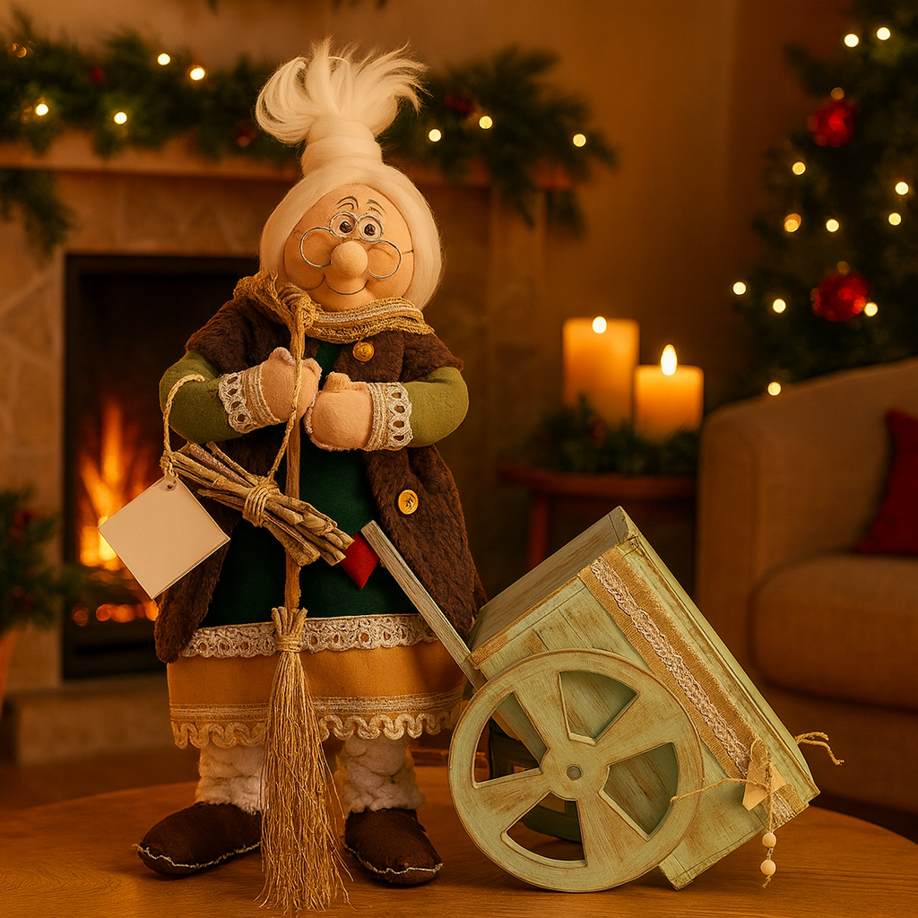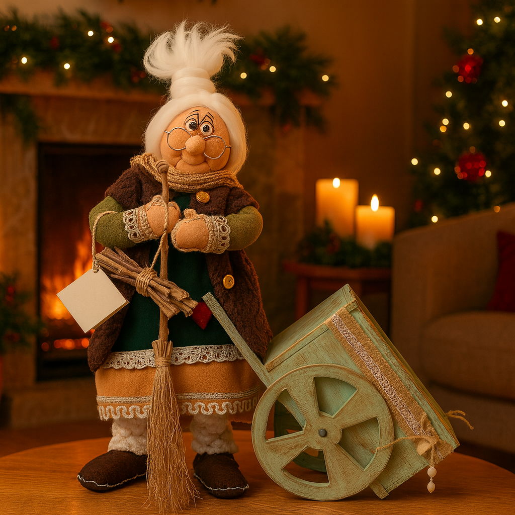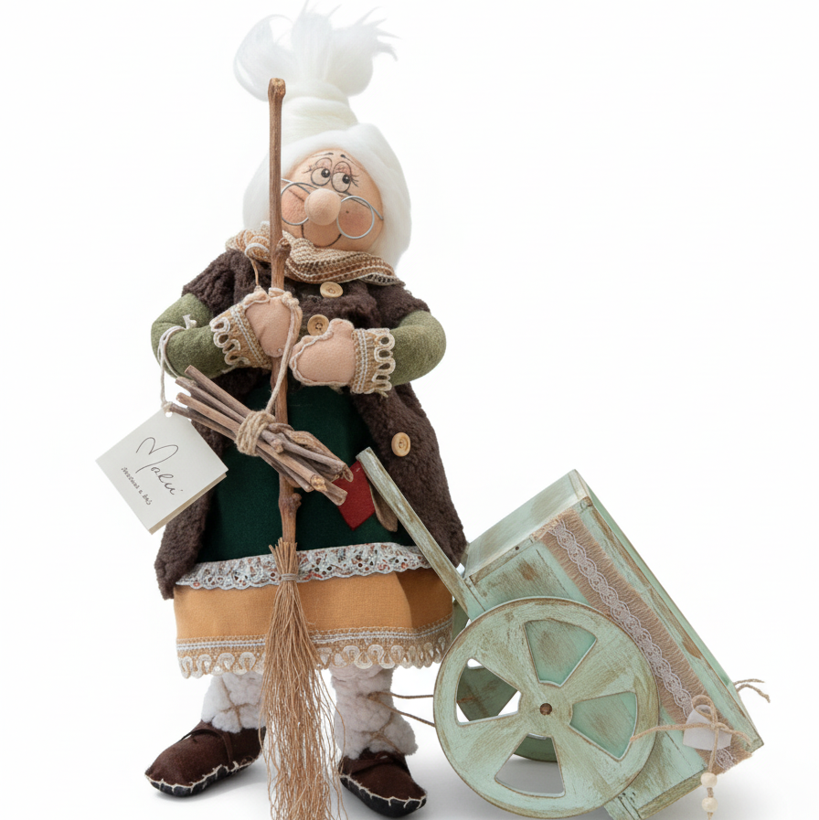 La Befana “Pierina” con carretto è una creazione artigianale di grande fascino, pensata per chi desidera impreziosire la propria casa con un tocco di tradizione e calore autentico.