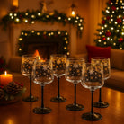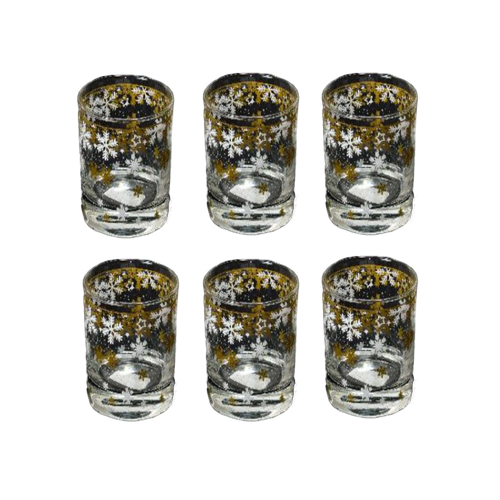 Questo set da 6 bicchieri è realizzato in vetro di alta qualità, impreziosito da una sofisticata finitura dorata che cattura immediatamente l'occhio e conferisce un senso di esclusività.