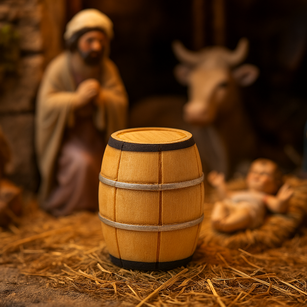 Perfetta per accompagnare i pastorelli o arricchire le taverne e le cantine del presepe, questa botte è un elemento decorativo che unisce stile e tradizione.