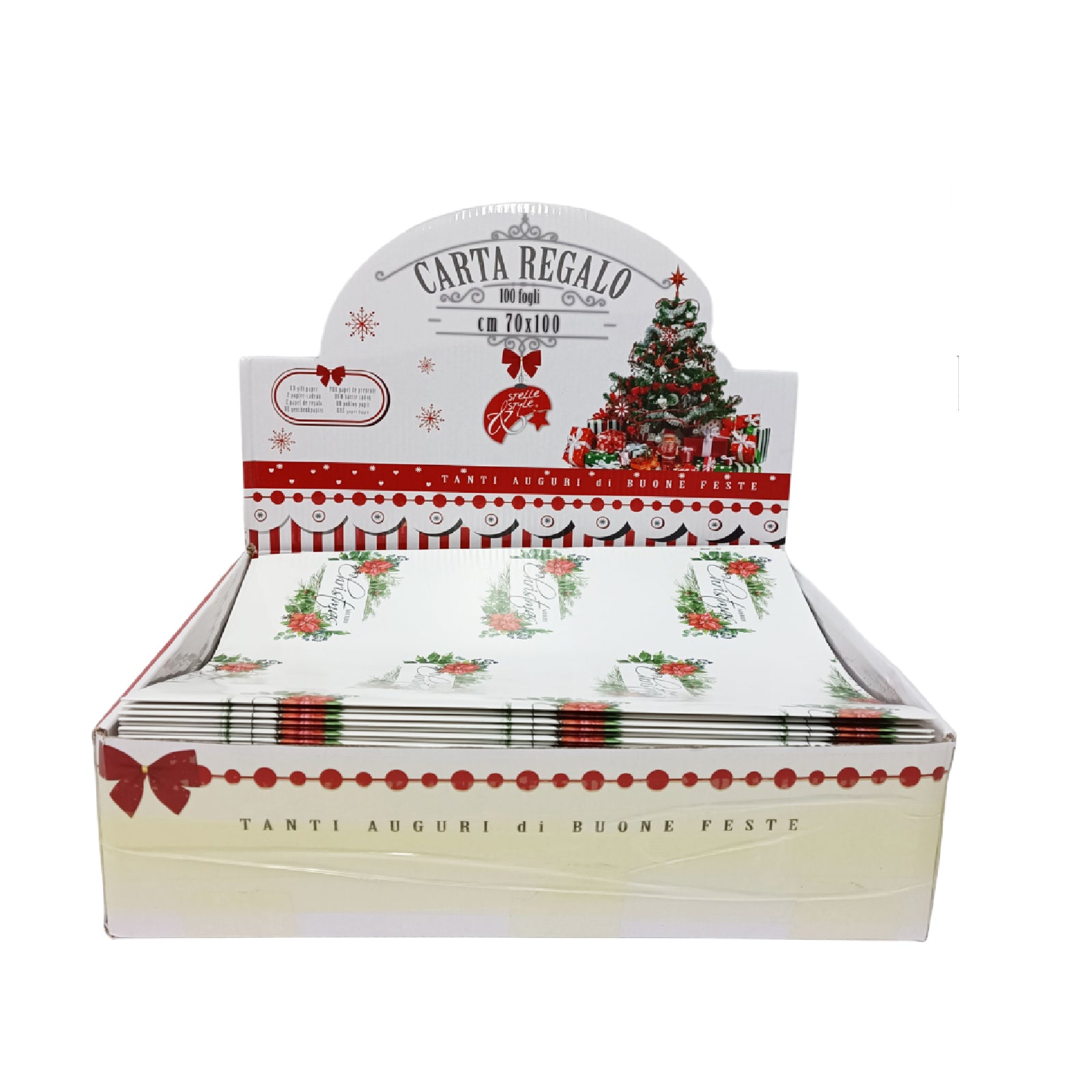 Box con 100 fogli 70 x 100 cm per carta regalo per decorazioni natalizie