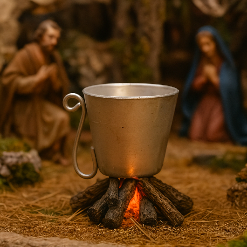 Porta realismo e fascino artigianale al tuo presepe con questa elegante brocca in latta con manico. Un accessorio curato nei dettagli che richiama gli oggetti della vita quotidiana di un tempo, perfetto per arricchire cucine, cortili e botteghe delle tue scenografie natalizie.
