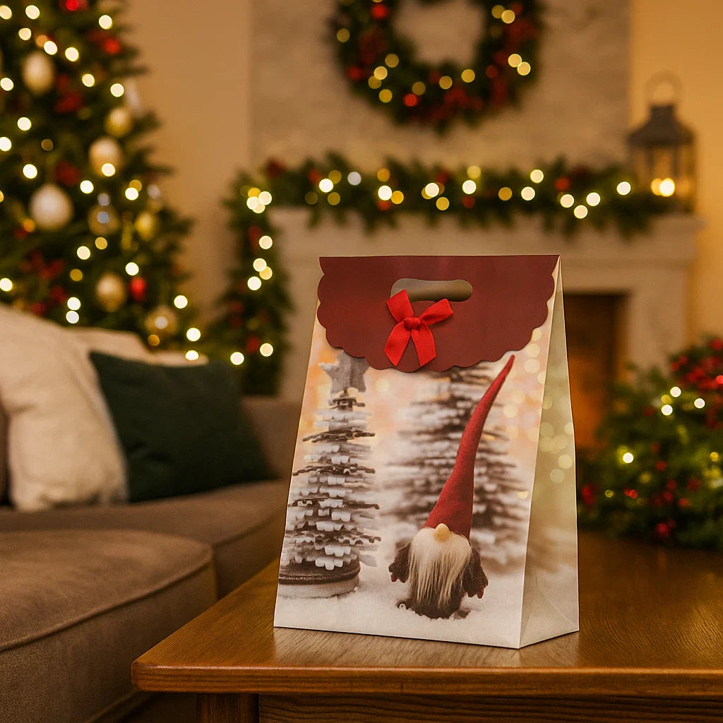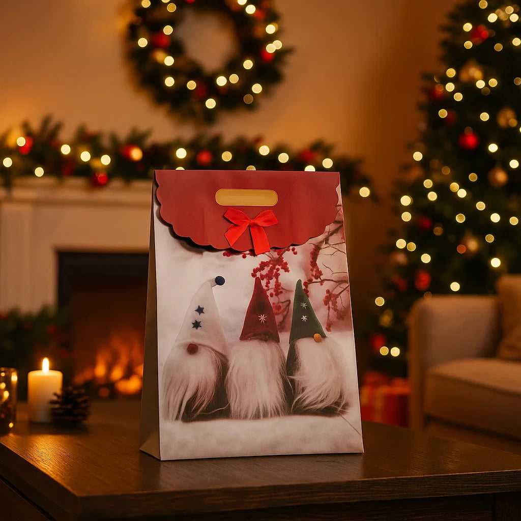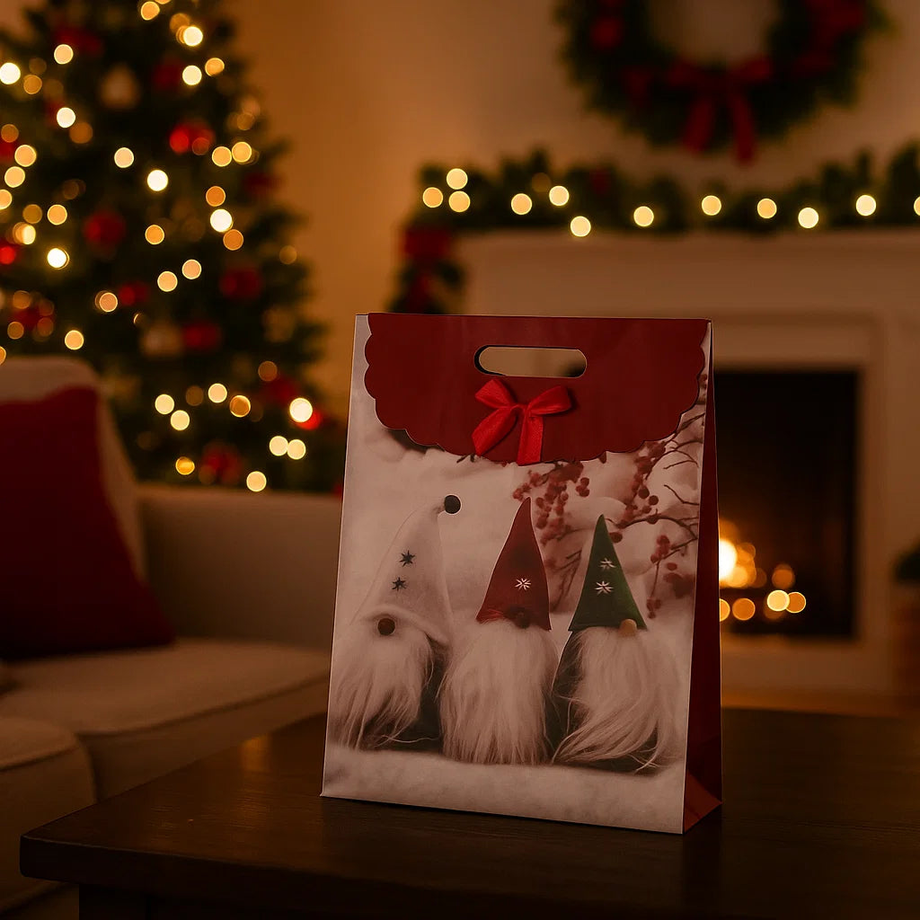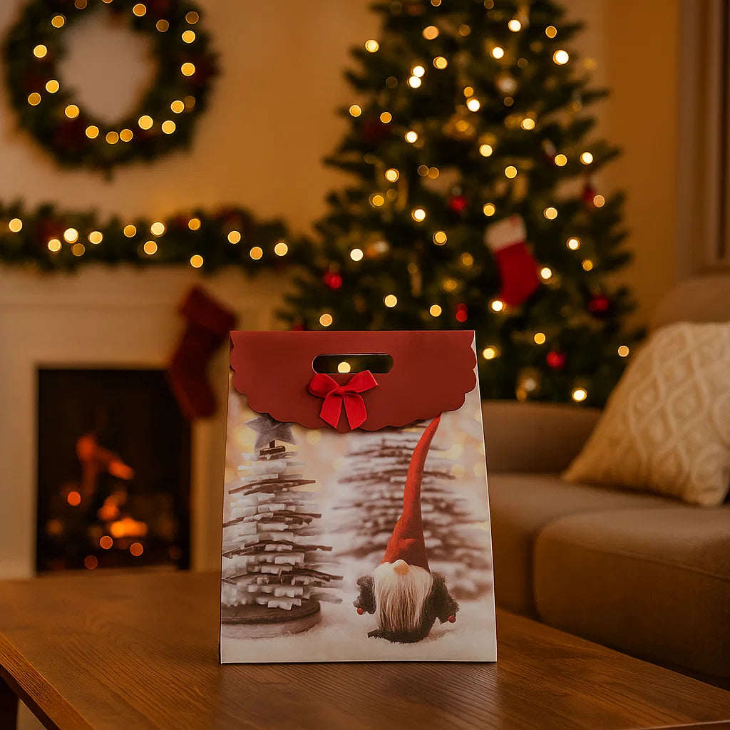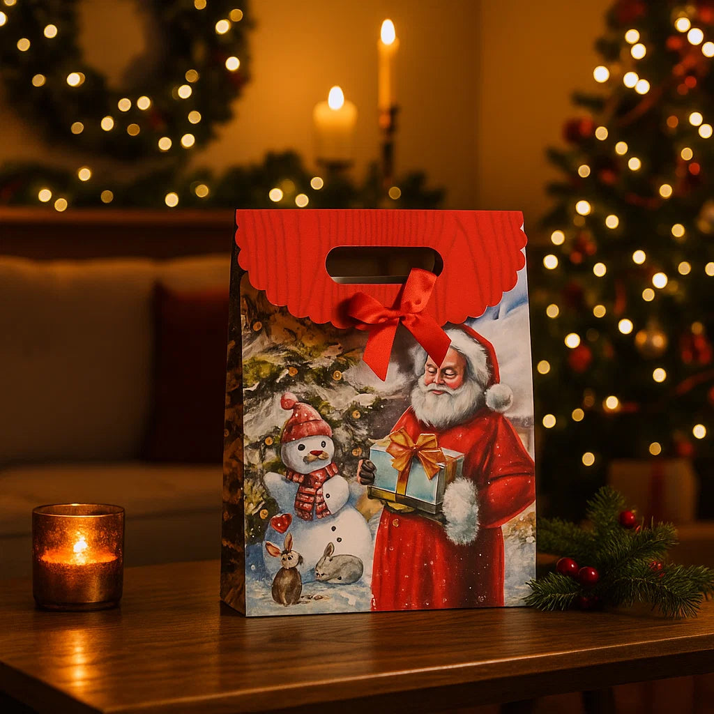 Progettata per catturare l'essenza del Natale, questa busta combina un design tradizionale con materiali di qualità, offrendo una soluzione elegante e festosa per la presentazione dei regali.