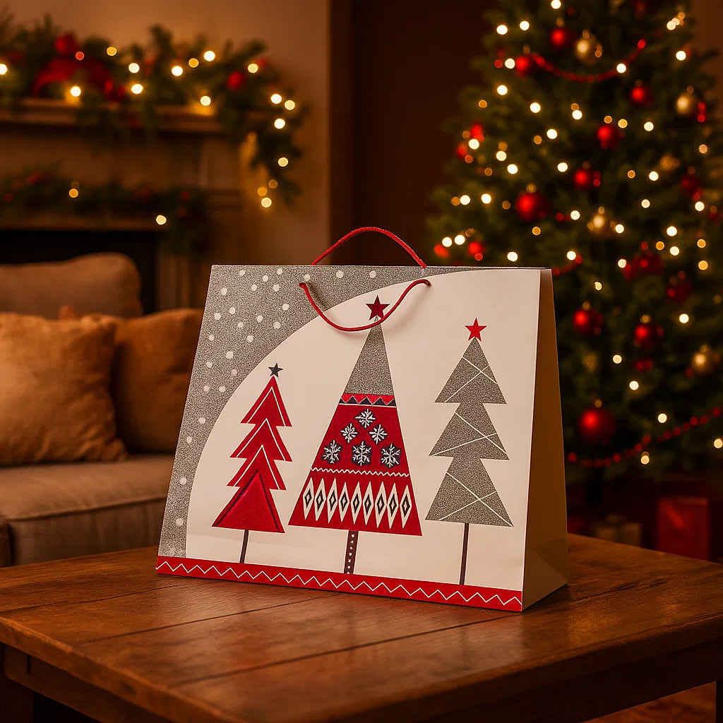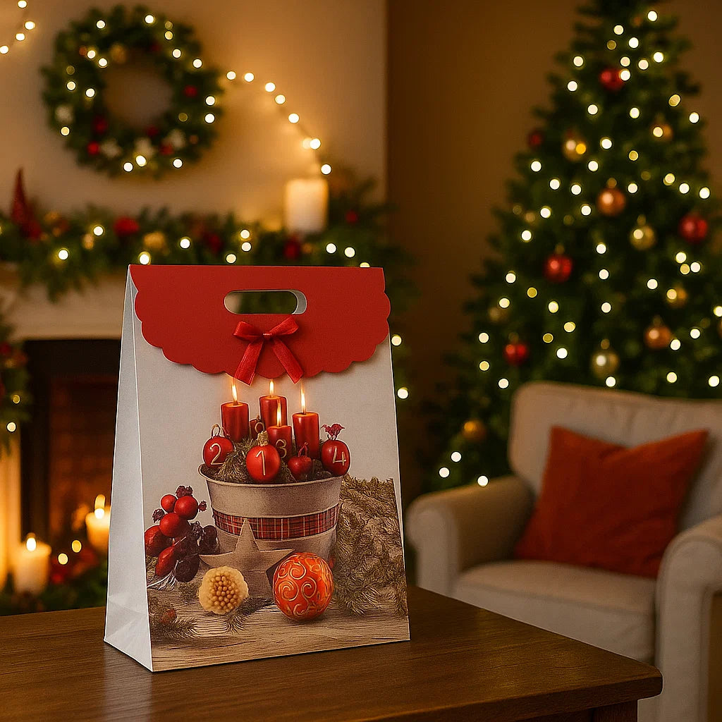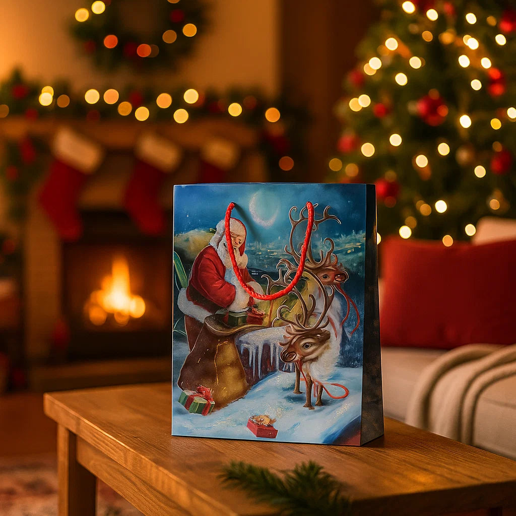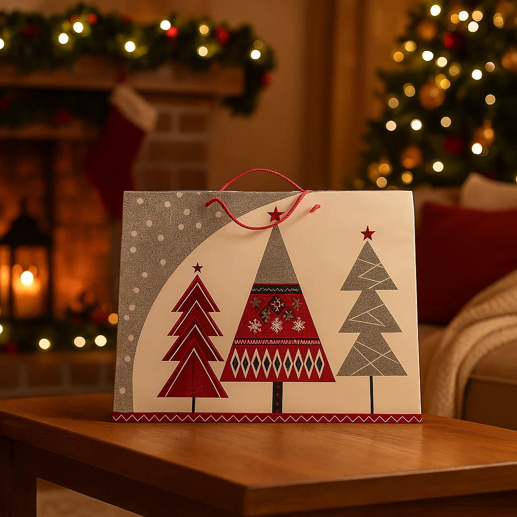 Progettata per catturare l'essenza del Natale, questa busta combina un design tradizionale con materiali di qualità, offrendo una soluzione elegante e festosa per la presentazione dei regali.