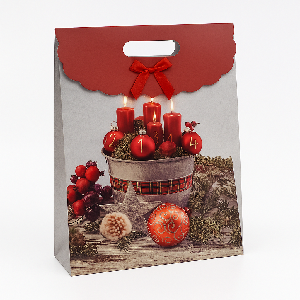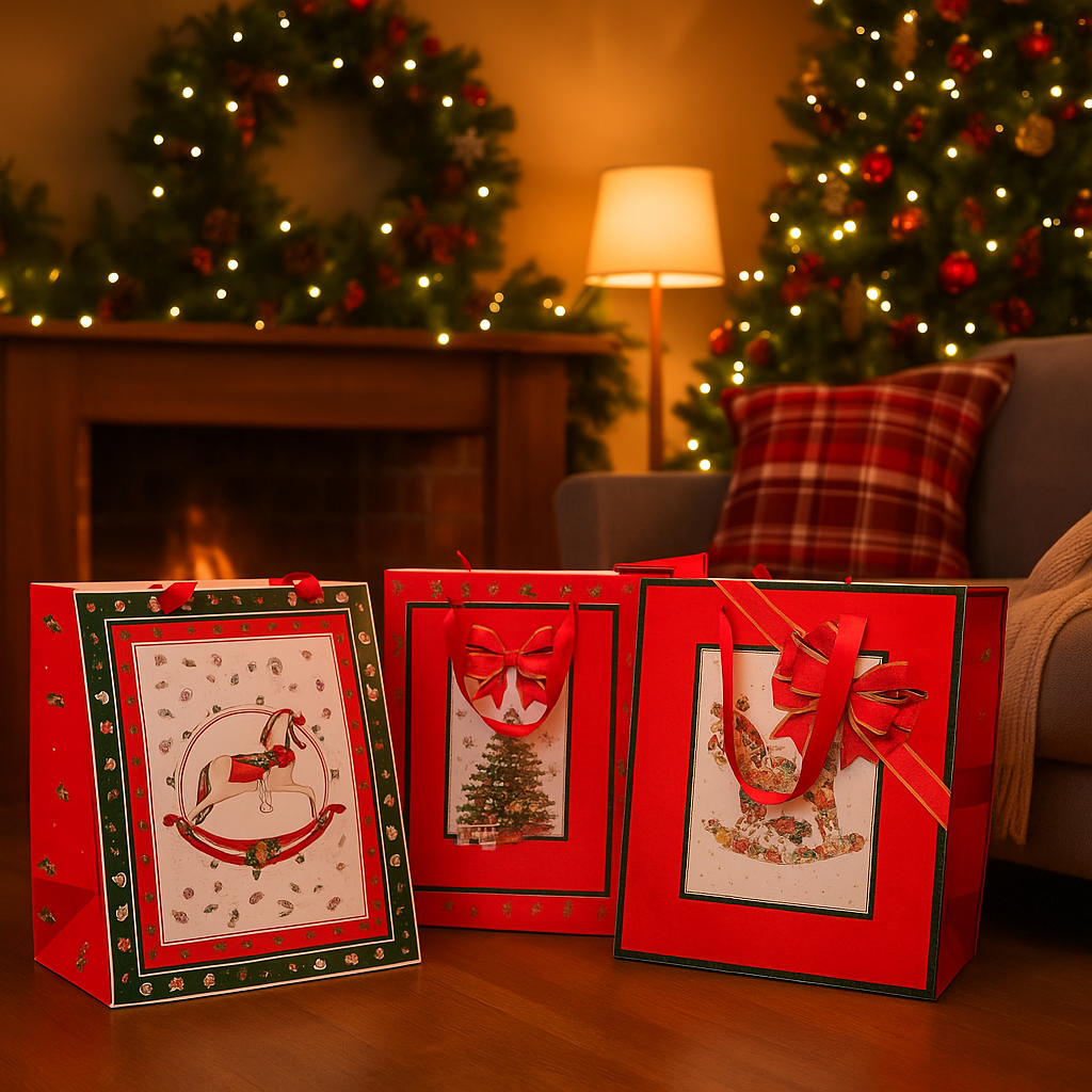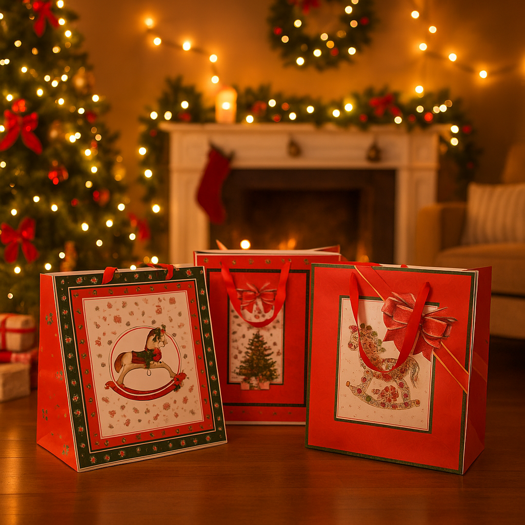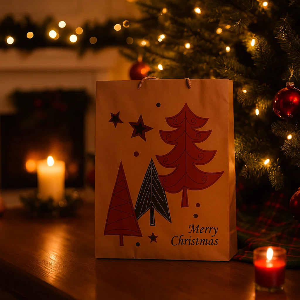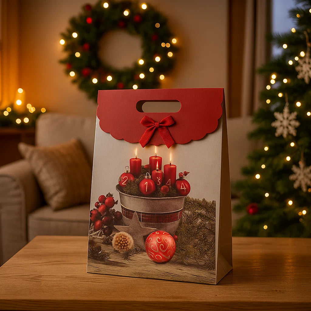 Progettata per catturare l'essenza del Natale, questa busta combina un design tradizionale con materiali di qualità, offrendo una soluzione elegante e festosa per la presentazione dei regali.