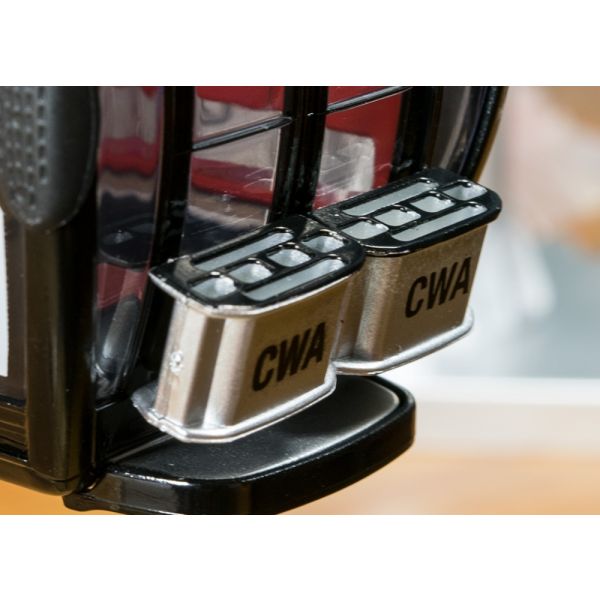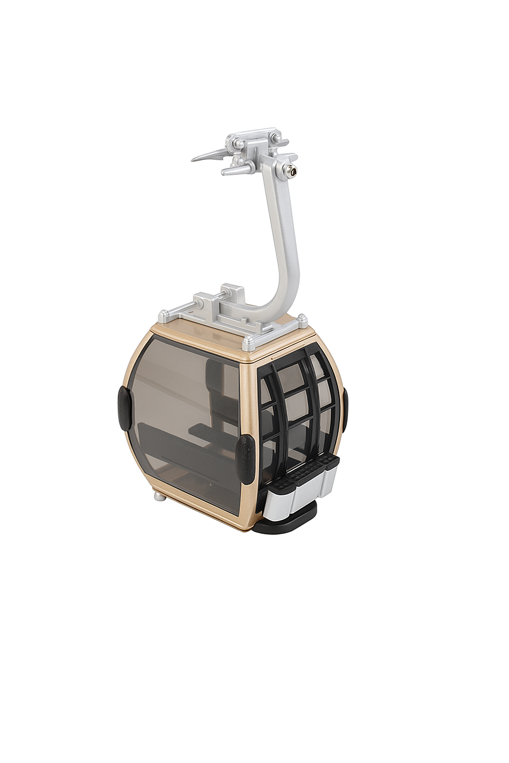 Aggiungi un tocco di eleganza al tuo villaggio di Natale con la cabina Omega IV oro, caratterizzata da una porta nera, in scala 1:32.