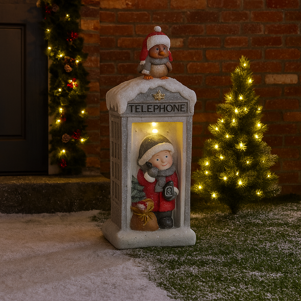Cabina Telefonica "Shiver" Grigio con led a batteria con Bimbo per Interni ed Esterni h 60 cm
