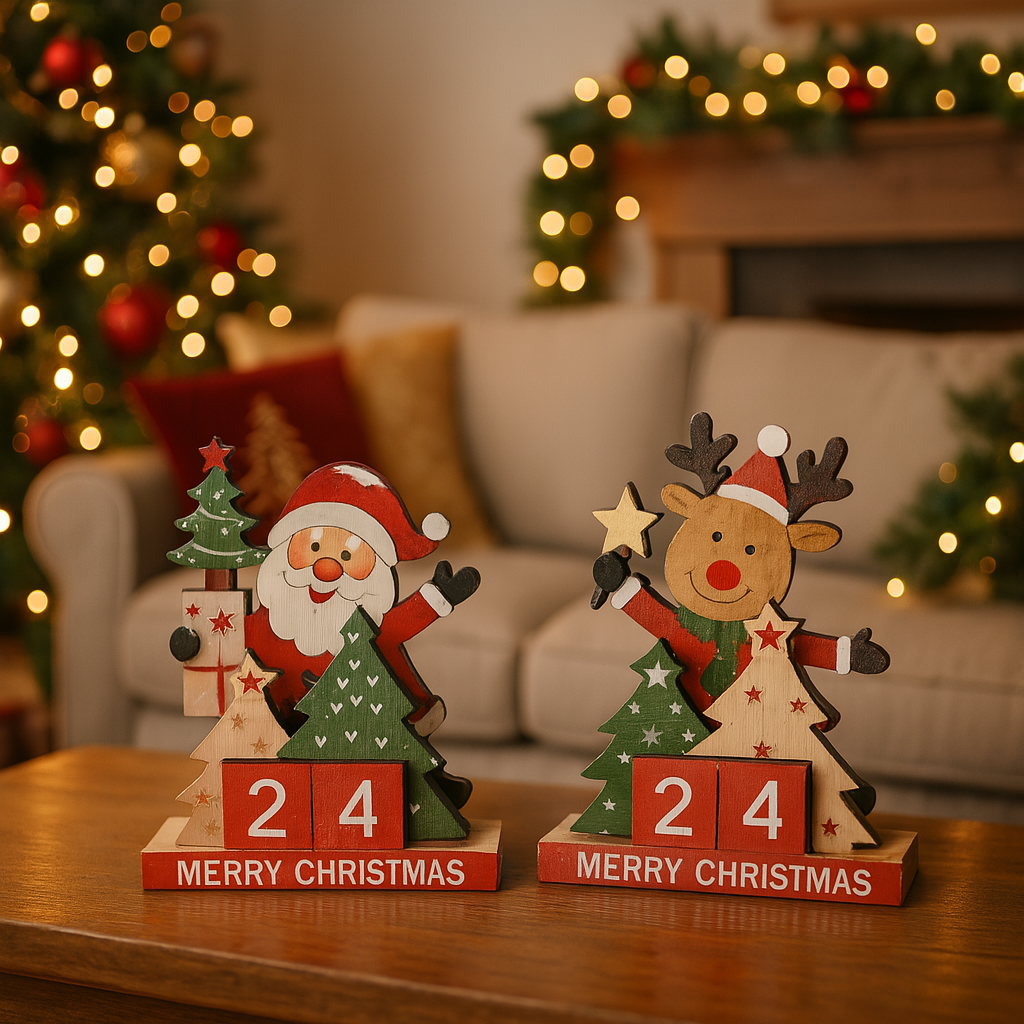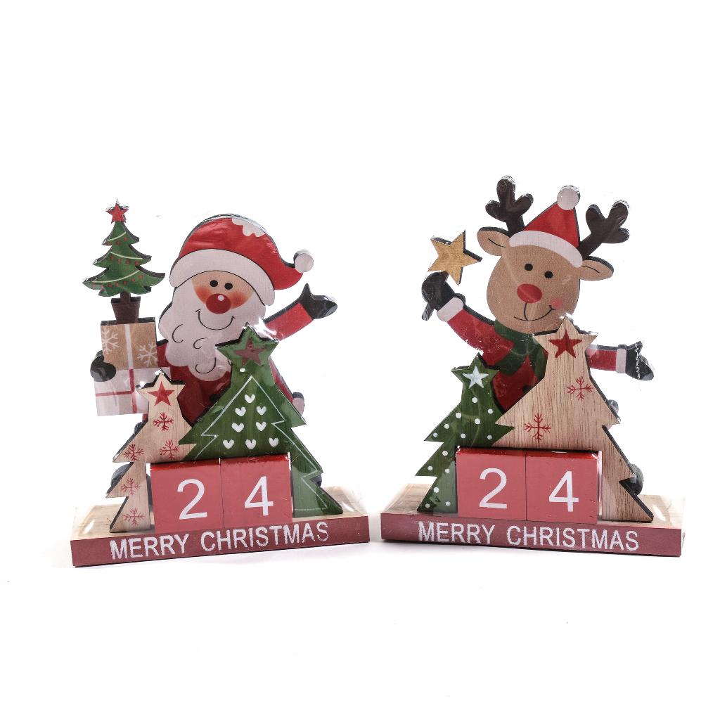 Calendario perpetuo per avvento in legno per decorazioni natalizie