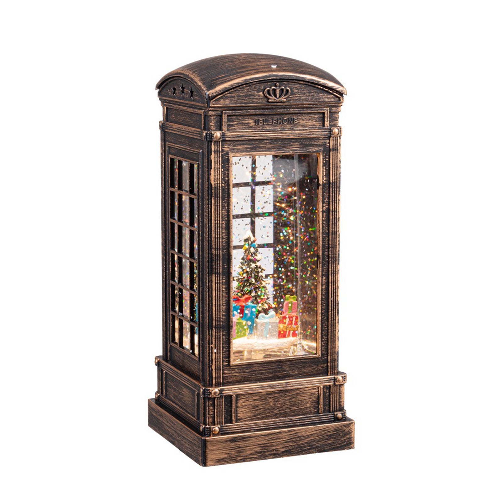 Questo elemento decorativo, che ricorda le tradizionali cabine telefoniche britanniche, è finemente dettagliato, catturando l'essenza nostalgica di una storica icona urbana e rivisitandola in chiave festiva.