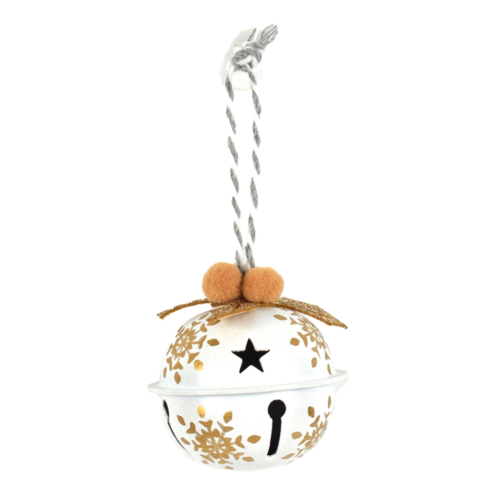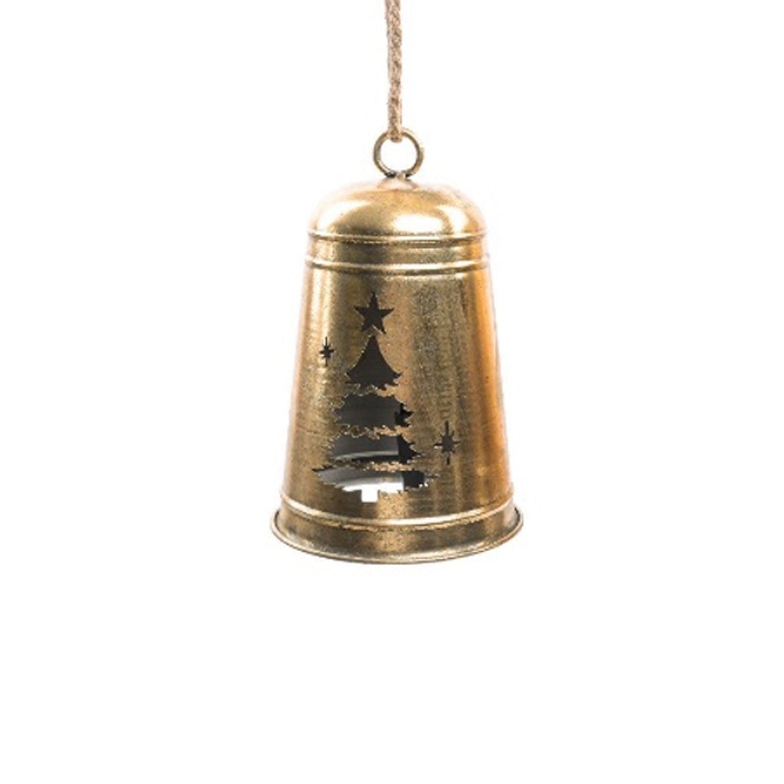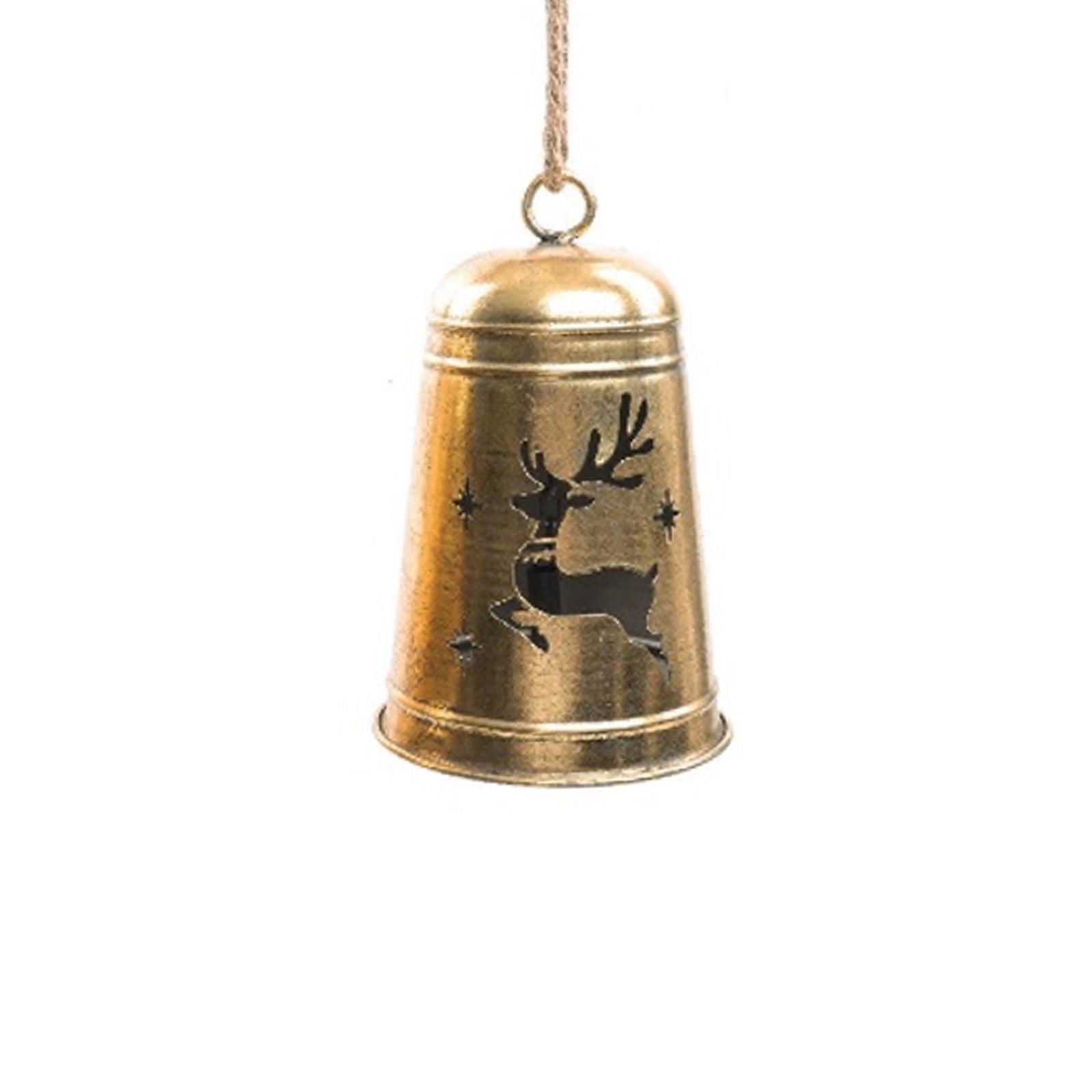 Questa campana decorativa è realizzata in metallo, un materiale che le conferisce robustezza e una superficie leggermente lucida capace di riflettere delicatamente la luce, creando piccoli bagliori che arricchiscono l’atmosfera natalizia.
