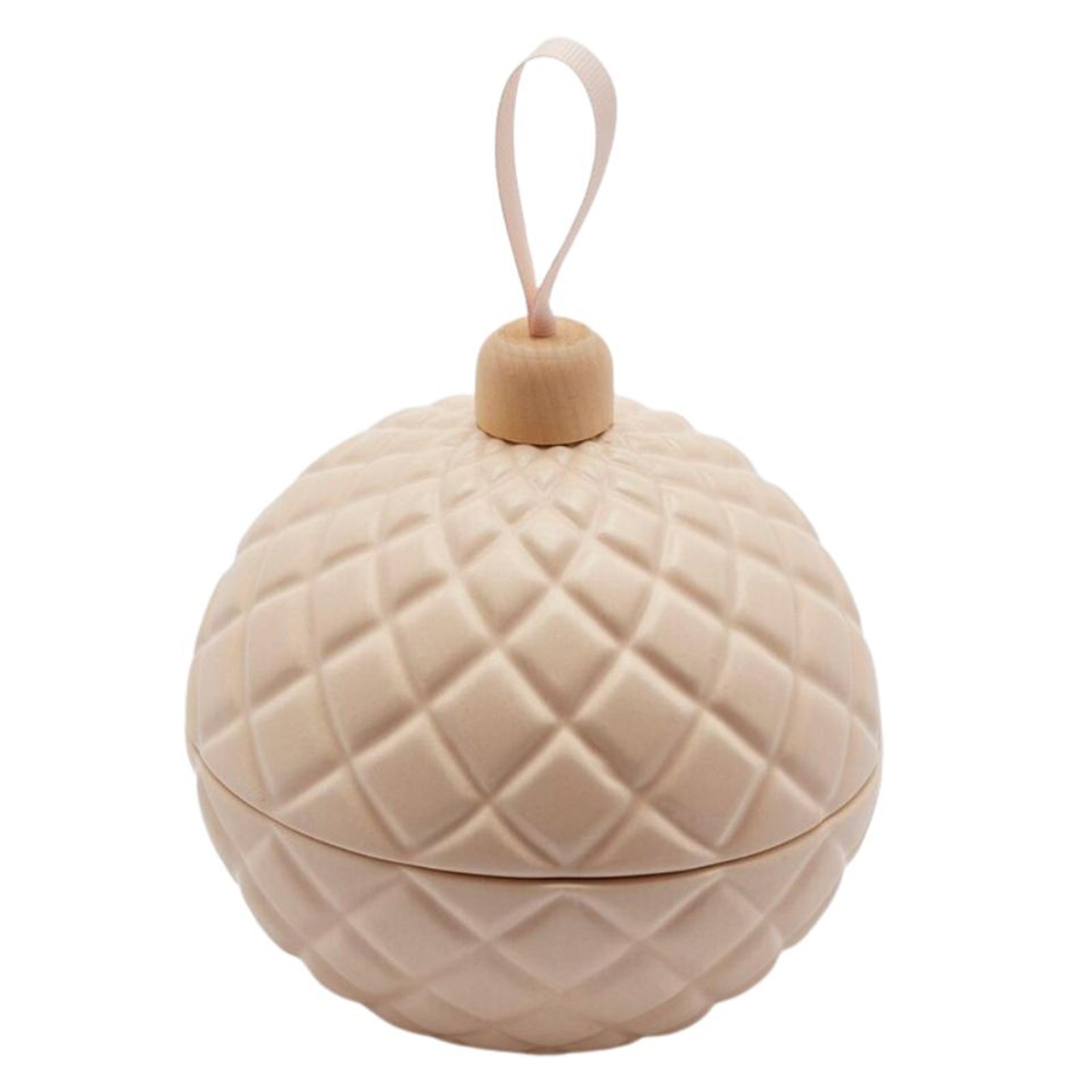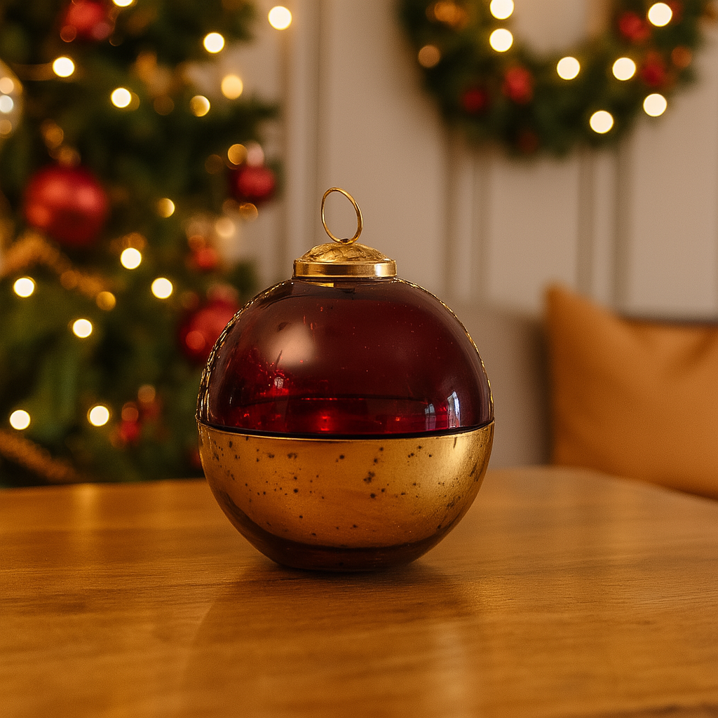 Una candela a forma di sfera in vetro di diametro 12 cm è un elemento decorativo elegante e versatile per il Natale.